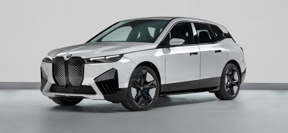 Specially developed body wrap tailored to the contours of the all-electric iX Sports Activity Vehicle (SAV) make the color changes are made possible by. When stimulated electrically, the electrophoretic technology brings different color pigments to the surface, causing a change in pigment.